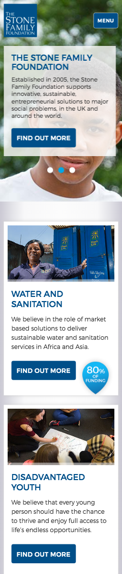 The design & development of the Stone Family Foundation website. A fully responsive Wordpress theme.